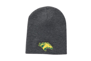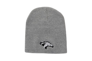 No Cuff Beanie With Black And White Bronco Head